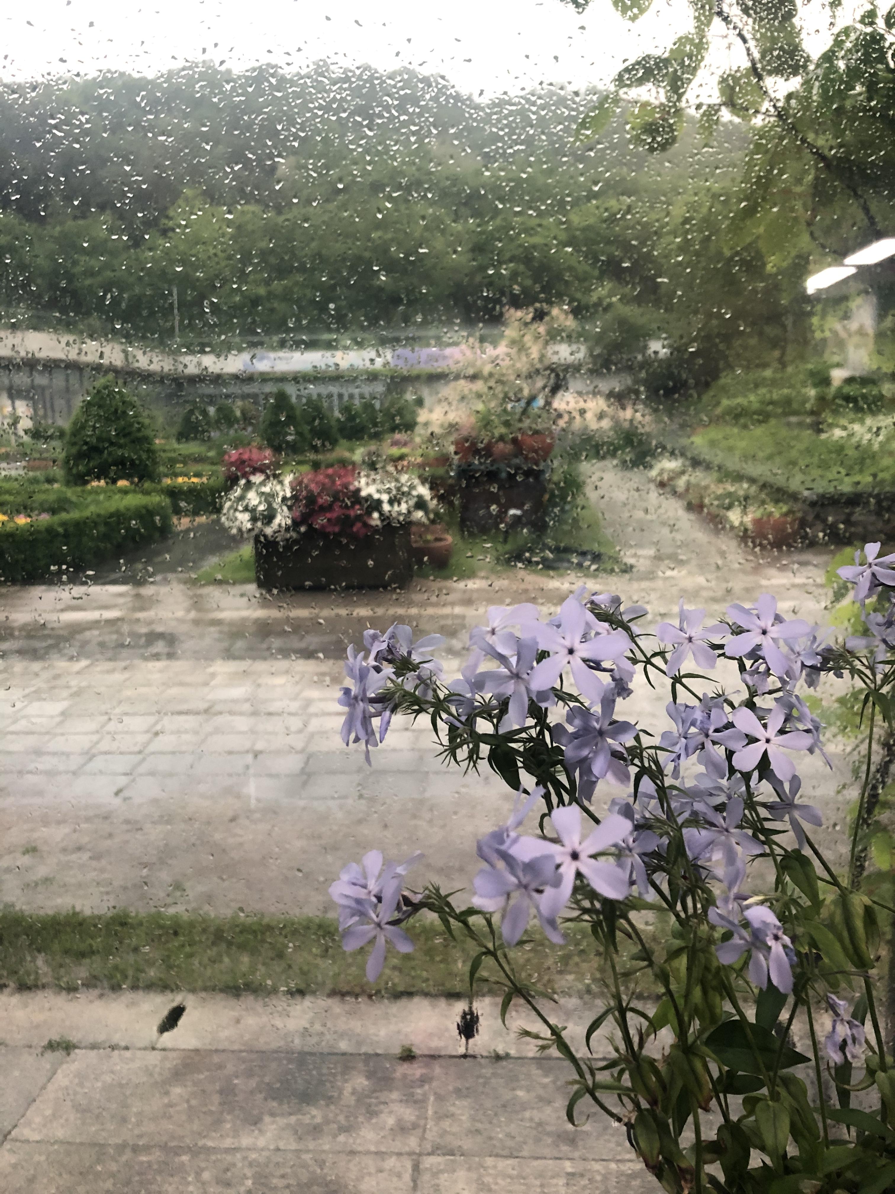 식물원 카페에 앉아 장대비 내리는 화원을 바라보는 기쁨.