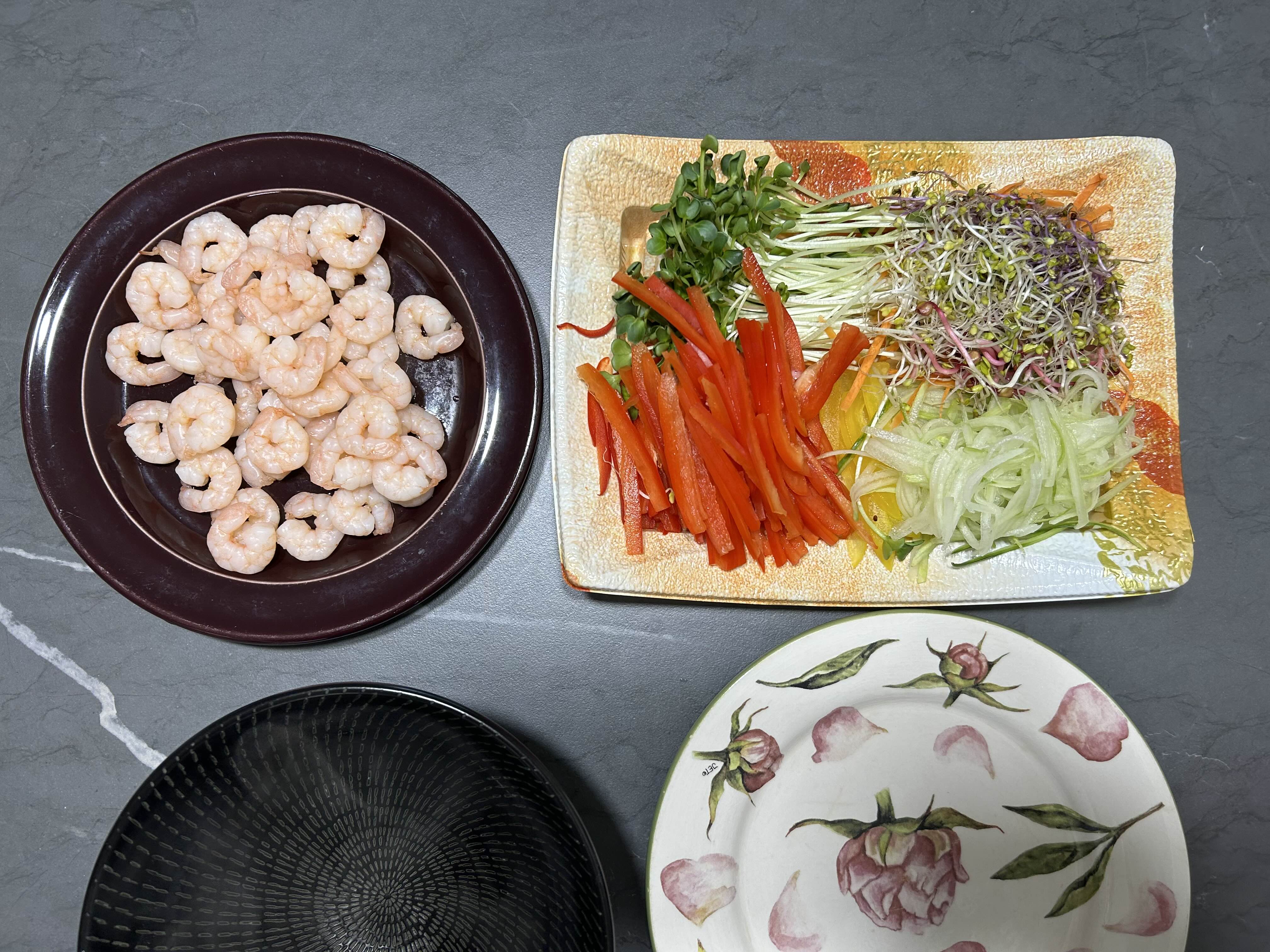 남은 월남쌈 야채에 새우 한 봉지 다 데쳐서 편안한 저녁 식사, 쵝오! 어쨌든 쵝오! 누구든 쵝오! 당신도 쵝오!