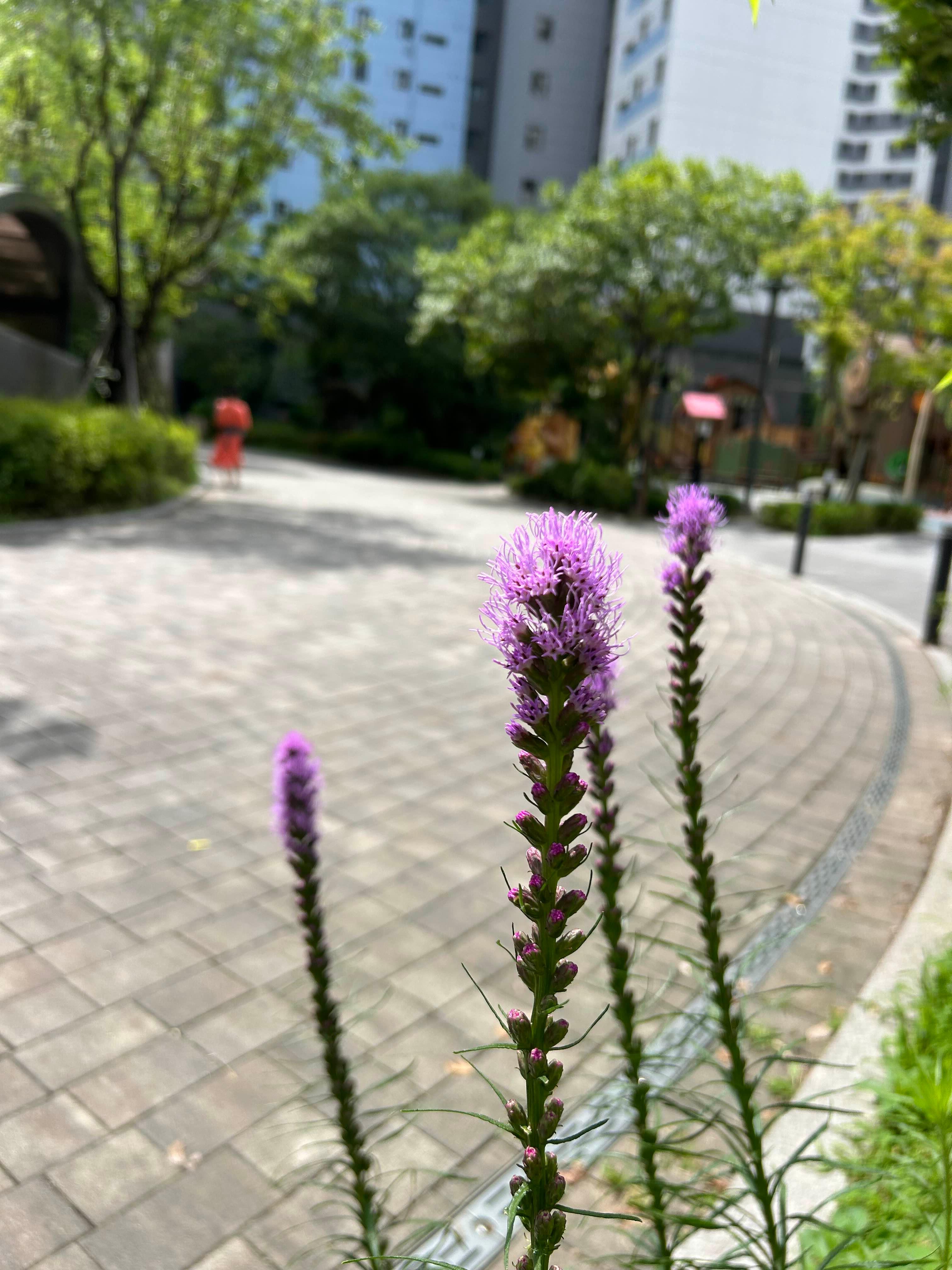 병원에 갔다가 돌아왔는데. 정문 근처의 연보라색 수국이 자꾸 윙크를 해서 오전 산책을 하게 되었다. 수국 옆에 엉겅퀴 같이 생긴 애가 있어서 "이름이 모니?" 했더니 "리아트리스"란다. 이러고 놀고 있는데. 저쪽에서 주황색 원피스를 입은 엄마가 아기를 앞으로 안고 살살 걷고 있는 것이다. 너무 예뻐서 슬쩍 사진에 담았다. 목발에 의지해 천천히 걷는 내 속도와 그의 걷는 속도가 비슷하다. 가만 보니 꽃이 보이면 그 앞에서 가만히 서 있는 것이다. 너무나 예쁘고 마음이 뭉클했다.